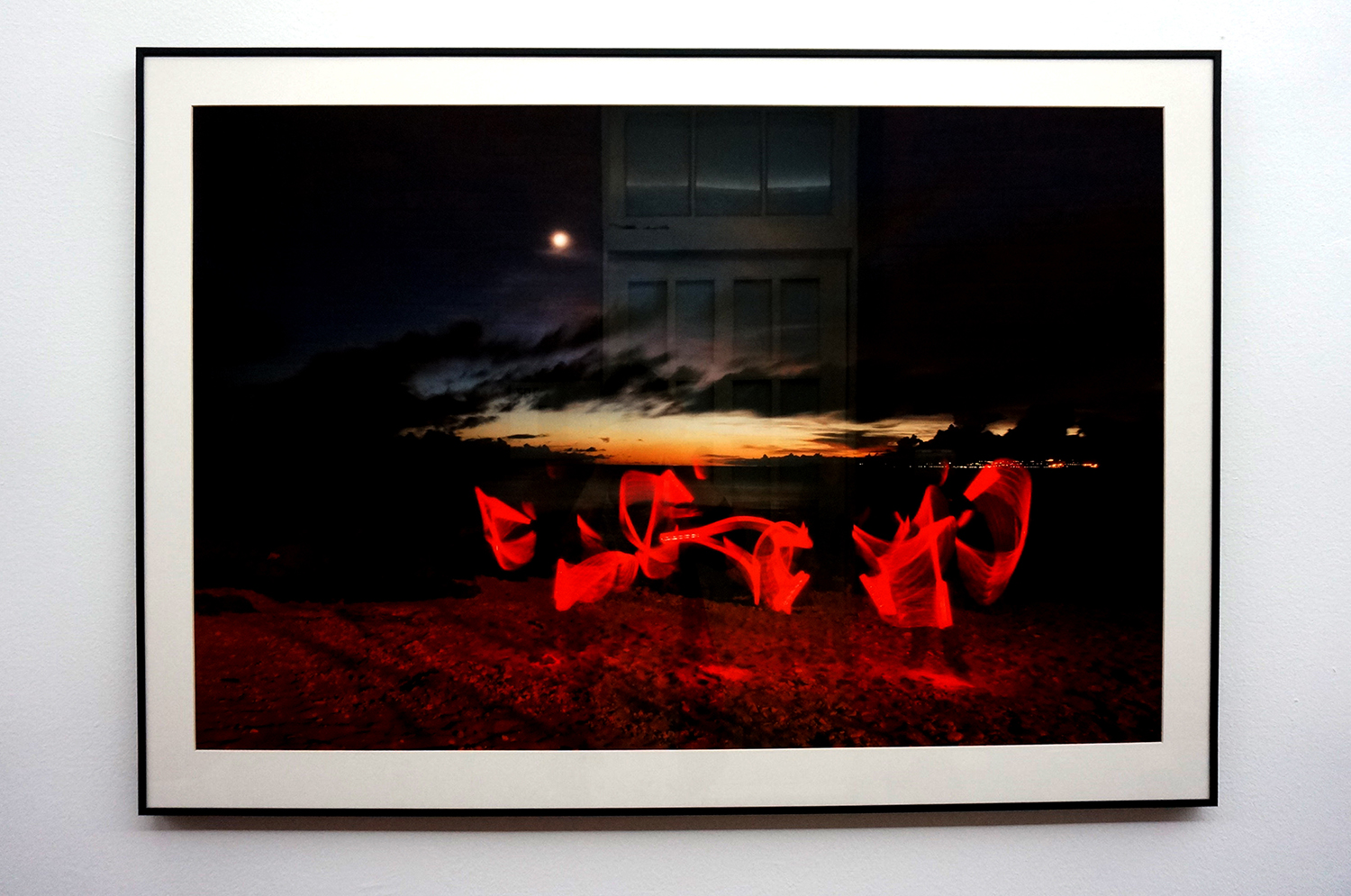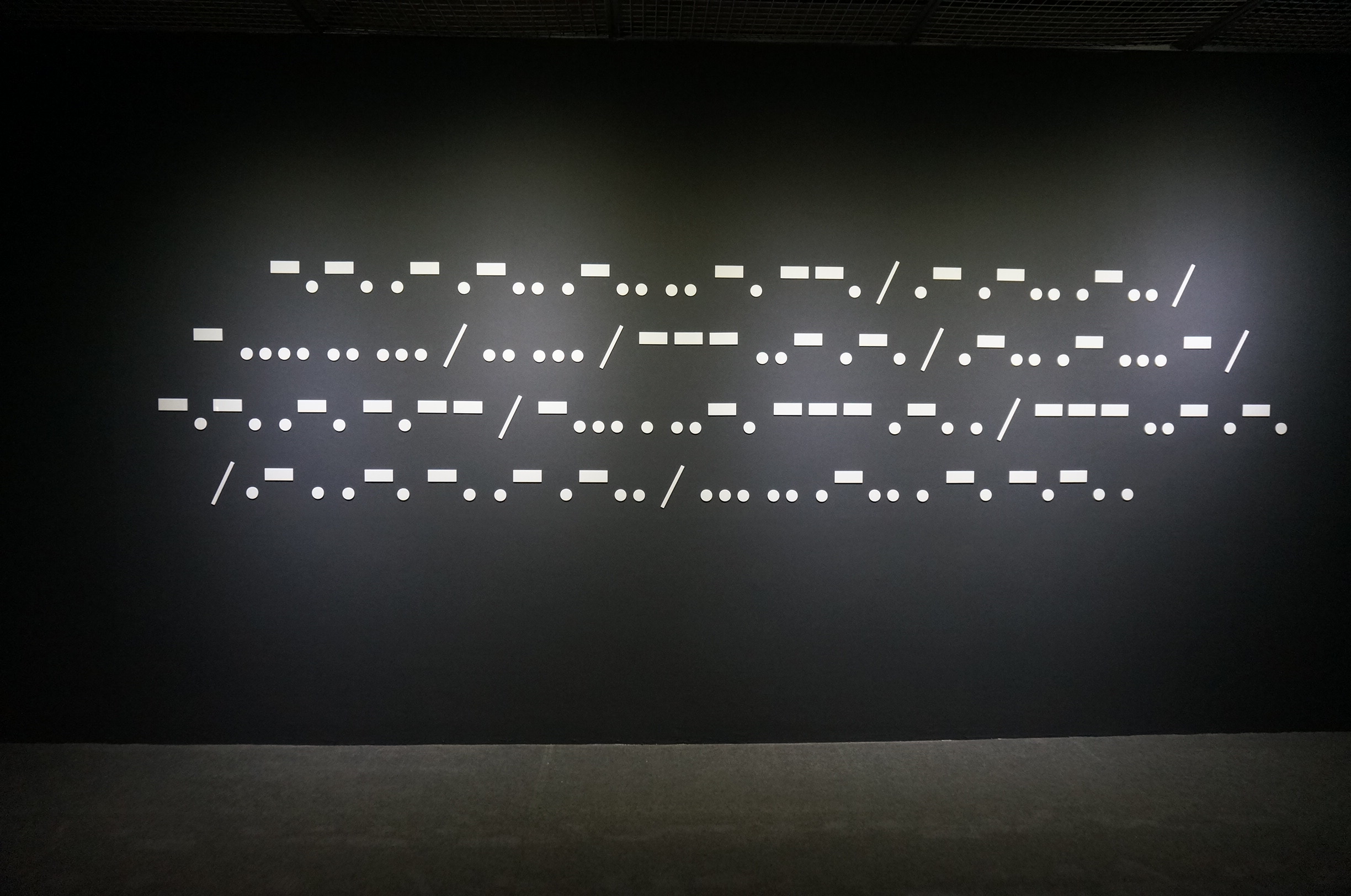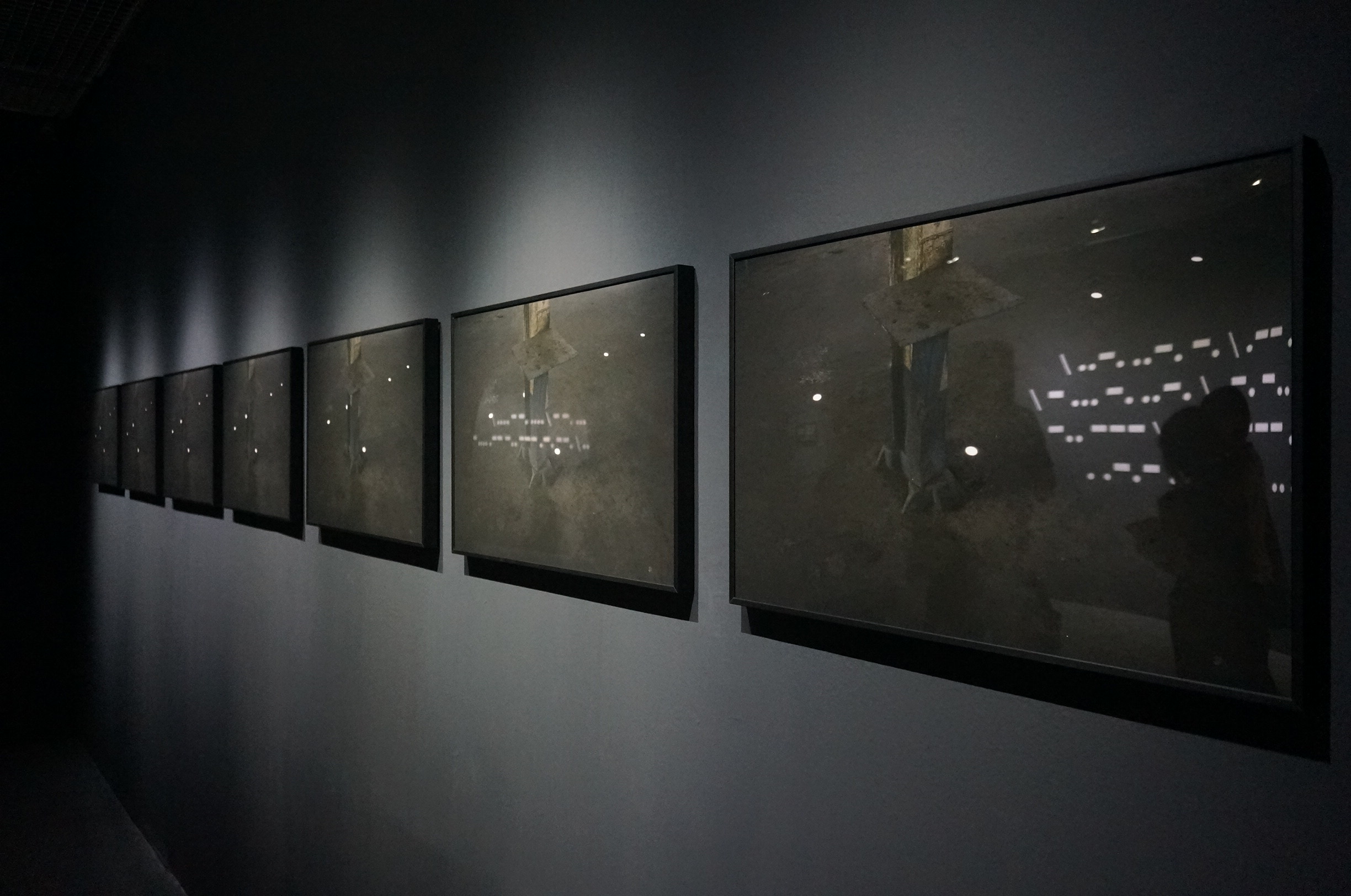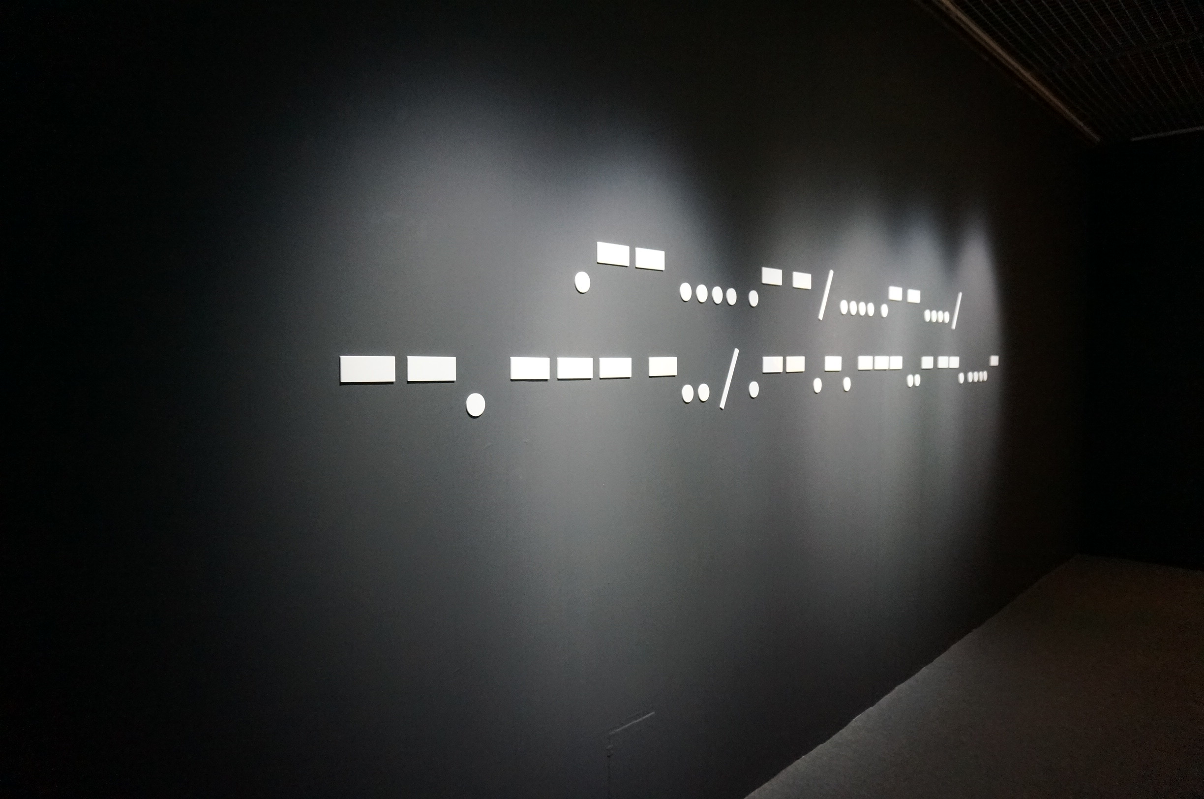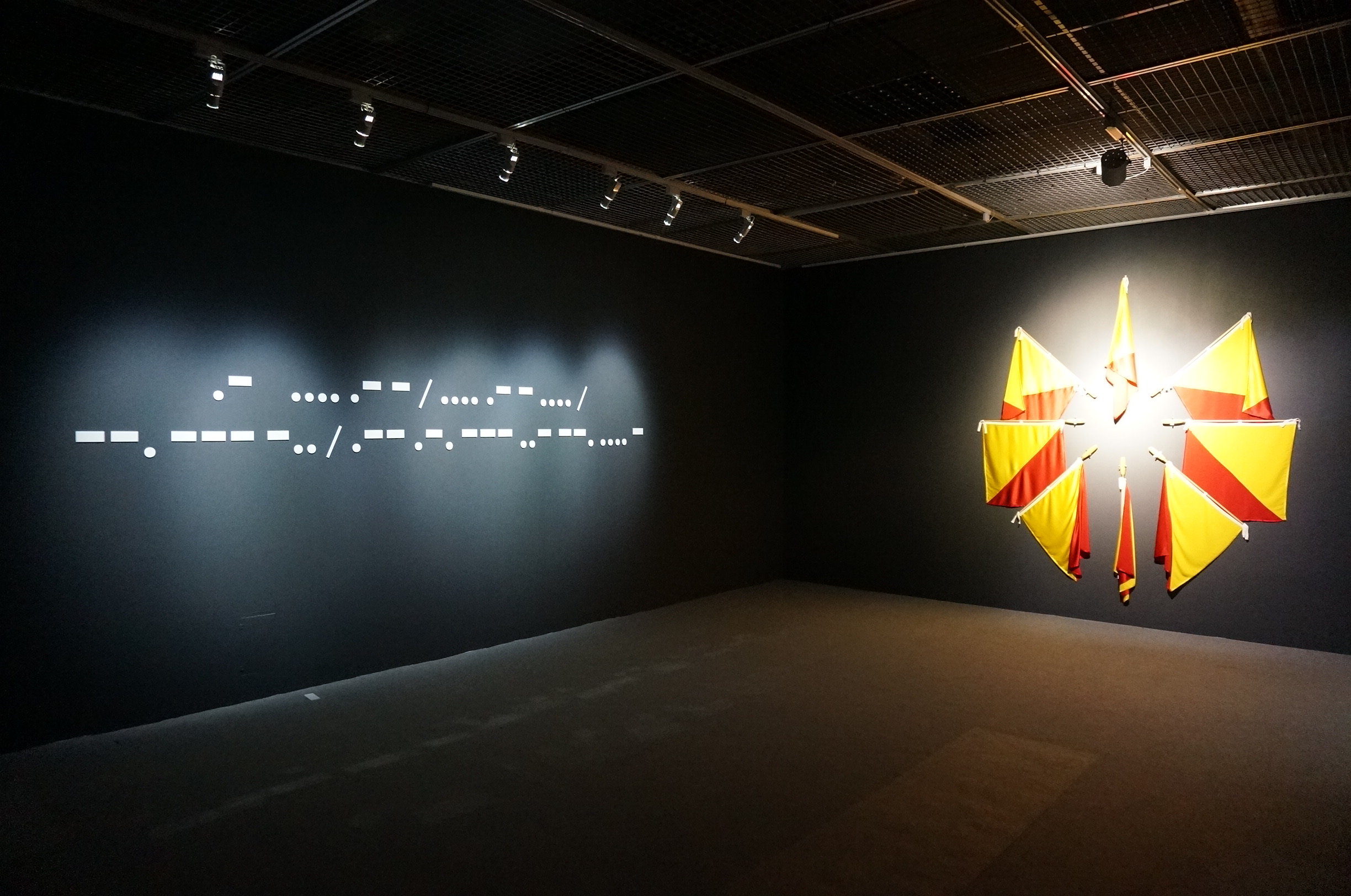 The title of this exhibition is derived from the first and last Morse Code messages to be transmitted. The first Morse Code message was transmitted by the inventor Samuel F.B. Morse on 24 May, 1844. His message was “What hath God wrought”. The last commercially transmitted Morse Code message was “Calling all, this is our last cry before our eternal silence”, French navy, 1997. Over the past few years, Chris Wainwright has used both these systems of communication to make a series of performance based photographic and installation works, often from ships at sea, and in various coastal locations in Europe, Taiwan and extensively in the Tohoku Region of Japan, the area massively affected by the great eastern earthquake and tsunami in March 2011. The messaging elements of the work refer to a range of environmental issues including: climate change, coastal erosion, earthquakes, climate enforced displacement and nuclear pollution. It focuses on the fragility of our relationship with the natural world due to the way we continue to exploit its natural resources in our need and desire to consume that is in turn bringing about irreversible climatic changes. The 20 photographs displayed in the exhibition were taken when Wainwright did his residency in a Taiwanese sugar factory and when he visited different seashores in Taiwan and Japan. They are images and messages created by Wainwright as he faced his camera in the dark night and made semaphores with traffic batons in his hands. One of the set includes six photographs taken by the sea in Taitung, revealing the semaphoric message of “carved into the bone of a turtle.” The series, Pause, includes two photographs, which are staged photography of semaphoric performance taken on beaches in Kenting in the evening and at sunrise in Taitung. Fishing Fleet includes five time-lapse photographs taken at a Japanese sea coast in night time, revealing bright dots of fishing boats catching fish together near the sea horizon and a long boat sliding across the images as a narrow dash of light. Through these images captured in real life, the artist responded to and reminded audience of the historic meaning and intriguing symbols of Morse Code that was once used in nautical communication. Constellation is another set of photographs taken at a specific site, seemingly conveying a symbolic message. Using Taitung Sugar Factory as a backdrop, this set is comprised of seven consecutive photographs of slowly moving light dots on the floor of the sugar factory. In comparison to the fixed iron post in the images, these bright dots seemed to correspond to the last Morse Code and were giving out their “last cry before eternal silence”!