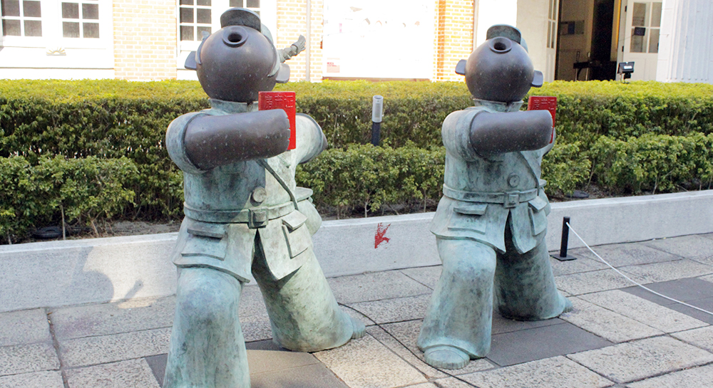 The transfer of “going forward” to “going for money” is just a transfer of power from the aspect of politics, yet it leads to permanent injury to the individuals due to the identical bewitched status. Wu Shaoxiang’s work directly points to the reality that China is experiencing a nationwide transformation from “going forward” to “going for money”. The once stately leader image, Chinese tunic suit, once natural landscape and places of interests, once pure love, are all for money. What is more, it is still the power which plays a crucial part behind the money. Wu Shaoxiang used coins and bills as the “unit” of modelling, making these welded images, providing a visual perception of piling up with“money”. It is just like the status quo in China, which is too bare to be ignored. Wu Shaoxiang ingeniously transferred the“exquisitely carved” hollow out in Chinese traditional carving into a feeling of “empty shell”. He tactfully used the oxidized green bronze to fabricate green U.S. dollar to traditional Chinese landscape, which had profound meanings. Wu Shaoxiang’s works poignantly aim at the power, yet are full of humour, teasing the authority in a means of tickling. The basis for Jiang Shuo’s work is similar to a grown up person reminiscing the childish games and cruel youth during the growing process with introspection, self-mockery and emotion minus the commanding and tense criticism. For one thing, Jiang Shuo herself was a “red guard”, who was in the generation of sacrificing youth for revolutionary ideal. It is easy to deny the politics of that age, yet the affection of culture memory to the personal belief, experience and emotion are indelible. However, living in Europe for decades has given her a distance, time and quietness to be mature and rational to reflect the problems.