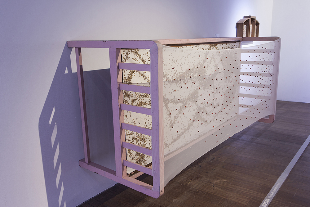Hwang Buh-Ching was born in Lukang, Changhua, 1948. He received his MFA from the Department of Plastic Art, University of Paris St-Denis, France in 1987. He currently lives in Tainan as an artist teaching at the Department of Architecture, National Cheng Kung University. Hwang Buh-Ching is an idiosyncratic talent and one of the most consistent mix media artists in Taiwan. In 1999, he was invited to represent Taiwan at the Venice Biennale. His installation work “Feast in the Wild” combines diverse plant seeds to represent the natural vibrancy of Taiwan and outdoor banquet to display unique Taiwanese culture. During the 2012 Olympics, Hwang led architecture students of National Cheng Kung University to create a large site-specific installation “Gaze,” of which he incorporated natural elements, cultural concepts, and engineering designs in the exhibition, merging various disciplines in an artwork that allows interactive interpretation. For many years, his mixed media and installation exhibitions travel to Shanghai, Macau, Hungary, Quebec, London, and Korea. His important works of different periods are collected by the Taipei Fine Arts Museum, Kaohsiung Museum of Fine Arts, and National Taiwan Museum of Fine Arts. Homeland: Edge of Desolation is Hwang Buh-Ching’s solo show. The show gathers Hwang’s thirty-four mixed media and installation works and introduces them in four themes, presenting the artist’s observation of nature, home, environment, and civilization. Through these four aspects, he expresses his sentiments and suggests how art can improve the cultural depth of society in this fast changing time. This exhibition is divided into four themes. “Message to the Ocean” traces the artist’s childhood memories and presents his imagination of the ocean. This theme can be seen as Hwang’s spiritual realm in which he interprets life and death through art. “Caring for the Environment” displays Hwang’s mixed media works that give objects a new visual language and serve as his ode to nature and the local environment. “Industrial Desolation” introduces works made from deserted objects from our society and forms a thought-provoking artistic vocabulary. By viewing these works, audiences are inspired to think about the harms of industrial production and consumerist culture. “Life‧Love” extends Hwang’s care for nature to the love of life. It shows Hwang’s concern for the diminished quality of environment, infiltration of industry in society, and the decline of humanist values. Here presents a unique bond and representation of his love for nature and his family and wife.