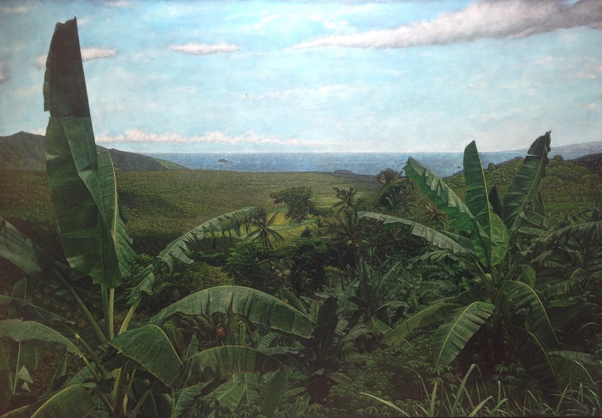 During the time of Japanese rule, the Japanese government aimed to construct Taiwan as a model colony of modernization, realizing their policies of development and rule for colonies. Therefore, they built quite a few botanical and public gardens, ushering in modernization in Taiwan. The curatorial team uses Chiayi Botanical Garden, Taipei Botanical Garden, Taichung Park, and Chiayi Park to illustrate the attitude of "decontextualisation" in modernity when facing nature. SHIU Sheng-Hung's Sanchuan State series begins with the picture postcards from the period of Japanese rule, or "Ehagaki," which used to feature sceneries or drawings and were distributed by the government and individuals. Among them, the official picture postcards have reflected the Japanese government's imagination and fabrication of Taiwanese landscape. With unrealistic colors, SHIU re-draws these images that symbolize the colonizer's gaze, and offers a new way of looking through the process of reviewing the landscape.