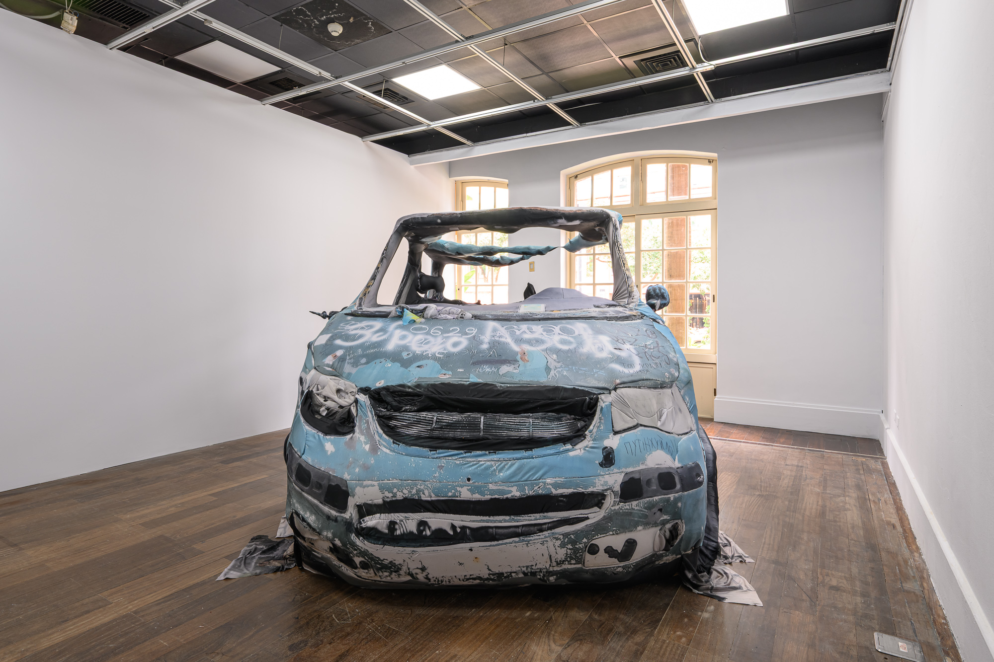 Leaning against the shelter while following the air raid evacuation instructions, one lowers the body and carefully enters this space. In scenes that intertwine disasters, wars, personal crises, and social relations, Safe Room illustrates a complex reality characterized by overlapping layers and tectonic fissures that separate individuals. Following this framework, the exhibition showcases a refuge that temporarily protects against imminent threats within a dynamic landscape that is constantly morphing, obscuring, and shaping itself. By envisioning such an alternate space, the exhibition not only erodes the boundaries of safety and isolation but also broadens our imagination of disasters.