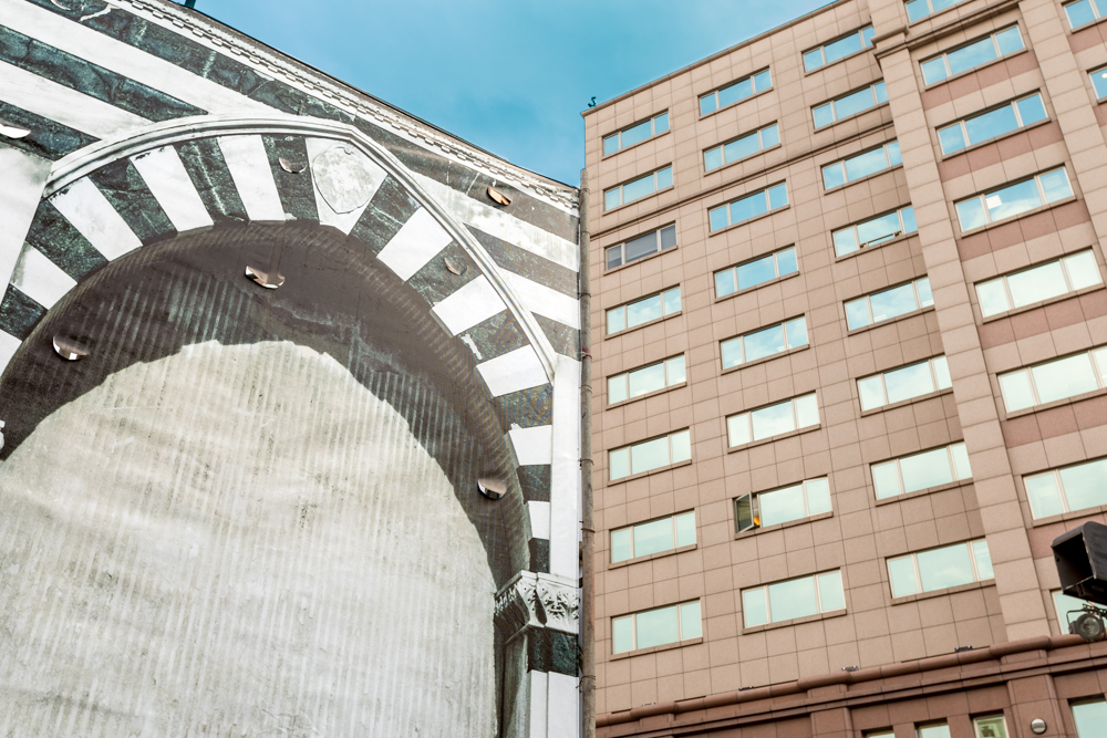 Superficially is Giacomo Zaganelli’s first solo exhibition at MOCA, Taipei. As an artist and a curator, Giacomo Zaganelli’s practice activated a potent dialogue between sculpture, video, and site-responsive installation. His works draw in a vast array of cultural, architecture, landscape, environment, and historical archaeology. By introducing traditional elements from the local community, and combining specific sites or space, his projects tend to reflect the social milieu of the time, create a dialogue between old and new, and to reexamine the contradictory situation in our modern times. Giacomo Zaganelli comes from Florence, the cradle of the Renaissance, where the local thriving tourism has ushered in a large influx of tourists taking over the area’s renowned destinations. Surrounded by magnificent sceneries, the attention of the tourists are, however, fixed on their phones or personal electronic devices, with the city’s centuries-old historical architectures and sculptures falling to supporting roles in people’s photographs or where they “check-in” online. Moreover, tarps with the façades of the sites printed on them are placed on barricades and scaffoldings when the area’s architectural heritage sites are closed for renovation; however, the tourists’ desires for photo taking don’t seem to be deterred by these “counterfeit spectacles”. Giacomo Zaganelli thinks the entire city seems to have turned into a large theatrical set designed to accommodate the preference of the general public, and the people scrambling over each other in order to take photos or have photos taken of them appear like a circus in disarray, looking quite ridiculous and peculiar. French philosopher Guy Debord proposed in The Society of the Spectacle, “…the spectacle, though it turns reality on its head, is itself a product of real activity. Likewise, lived reality suffers the material assaults of the spectacle's mechanisms of contemplation…” The “Superficially” examined in this exhibition does not point at ancient city’s traditional and romantic impression but exposes how virtual landscapes have successfully dominated modern people’s perceptual life. Working with the exhibition space inside the museum, Giacomo Zaganelli presents in this exhibition a series of videos and installations he has created in Taiwan, with the exhibition further extended outwards to the museum’s outdoor plaza, allowing the audience to experience his impactful art in a more direct manner.
