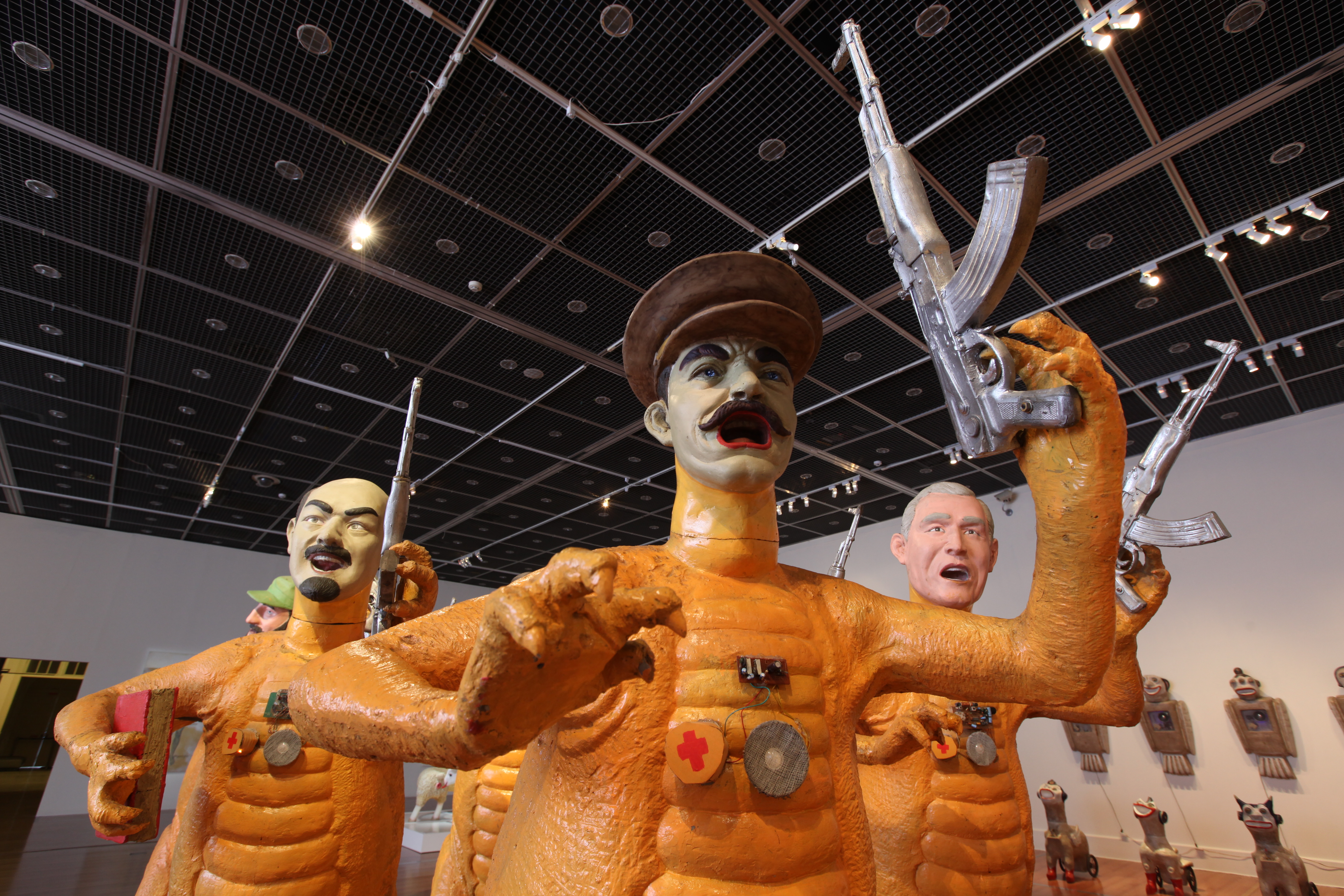 “Parody” refers to a unique approach of art imitation that takes the original context of an art expression – such as poetry, theater, or music – and distorts it into a creation containing another set of meaning, usually filled with imitation, joke, satire, comedy, buffoonery, and even ridicule. The essence of “parody” derives from human nature, often serving as medicine for humanity to obtain self-treatment, self-consolation, and introspection. Thus, an artistic creation in the style of “parody” is a cultural subject where every person can relate to and share in this era of globalization. In the contemporary world, the artists inspired by the essence of parody are innumerable. This exhibition attempts to make a selection among Asian artists, inviting those who are not only able to provide cultural diversity and express of their beliefs, but above all, explore the “parody” spirit that is ever-present in our daily lives. The artistic works of “parody” differentiate themselves from ill-intended spoofs produced by discontent or nonsensical mockeries. “Parody” makes an attempt to inject complex and multi-layered ideas in jokes that are by nature simple and relaxing. The exhibition will use methods such as imitation, disguise, collage and ridicule to target a phenomenon or object with satirical representations and innuendos. The works in “parody” might seem technically simple, yet their undertones are subtle, abundant, and transcendentally superb. “Parody” is the highest of spoofs, overwhelmingly nonsensical, pricelessly ridiculous, and remarkably inappropriate! “Parody” includes nineteen artist groups: The Blue Noses Group, Revision, and Tyminko & Mitrichenka from Russia; Agus Suwage, Heri Dono, and I Nyoman Masriadi from India; Nishio Yasuyuki, Sako Kojima, and Ernie Matsui from Japan; Qing-Song Wang and Na Yang from China; Ming Wong from Singapore; and Chun-Teng Chu, Bo-Liang Wu, Ching-Yao Chen, Yi-Li Yeh, Yu-An Liao, Mu-Chi Hsieh, R.B.T, and among others from Taiwan.