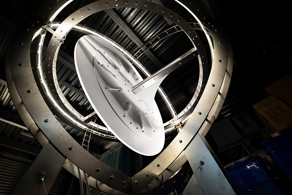 The title of the exhibition, The Weight of Multiple Universes, alludes to questions on such experiences of perceptual knowledge. The concept of the “universe” entails spatial and temporal factors. It encompasses everything that’s in the celestial skies, things that are unknown and difficult to gauge. Weights and measures refer to the fundamental physical quantities of length, mass, and weight. In order to develop statistics based on this foundation, the correct gauge, an instrument that measures these units, then becomes quite crucial. In astronomy, light-year is a common unit. It may be difficult for us to imagine just how far 9.46 trillion kilometers (9.46×10 ¹ ² km) is, which is the distance that light travels in a vacuum in one year. The concept is still hard to comprehend even if we use the length of Taiwan, which is 394 km, as a gauging reference point. However, it becomes easier for us to visualize when a different method of measuring is used, for instance: “It takes light an average of around 8 minutes to travel from the Sun to the Earth.” Therefore, the Sun we see on Earth was emitted from the actual Sun 8 minutes ago, and we see the Moon not as it is but as it was about 1 second ago. Based on this, things seem to become easier for us to grasp.
