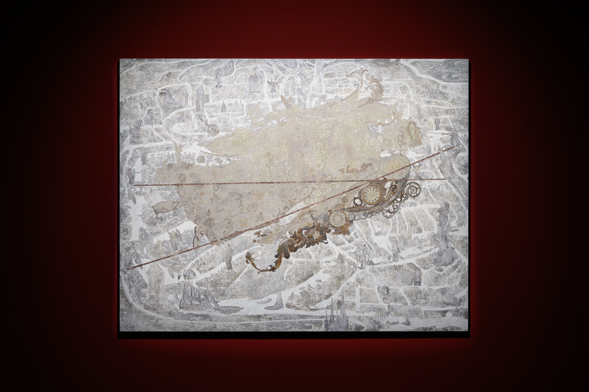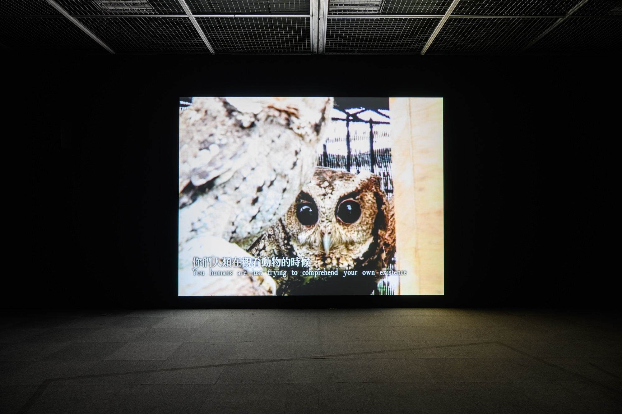 Traveling Backwards—to the stories we left behind on view on the second-floor galleries of MoCA Taipei is a journey unveiled with Hsu Su-Chen’s An Owl in Time Differences that engages in a dialectic of time through a dialogue between an owl and the artist/us outside the frame as well as Wang Ting-Yu’s paintings that juxtapose cross-media and cross-period images on canvases reminiscent of constellation maps/atlases. Sitting at different class carriages with their own luggage, each passenger experiences different views from their respective seats… With the individual contrast with the larger era, as history changes and system builds, power and politics have determined those to be seen as well as those to be excluded. Chen Che-Wei focuses on the power systems of representation in modern national regimes, especially the subjectivity and complex circumstances of mental patients. His work Spear features an actor friend suffering from dissociative disorders, who performs his own memories in a video interweaving and colliding different layers of reality. Liu Han-Chih’s video installation, On Patrol, features a night shift security guard who appears to have much free time between the uncontrollable intervals of coming and leaving cars. In fact, his so-called free time is determined by others and might be interrupted anytime.