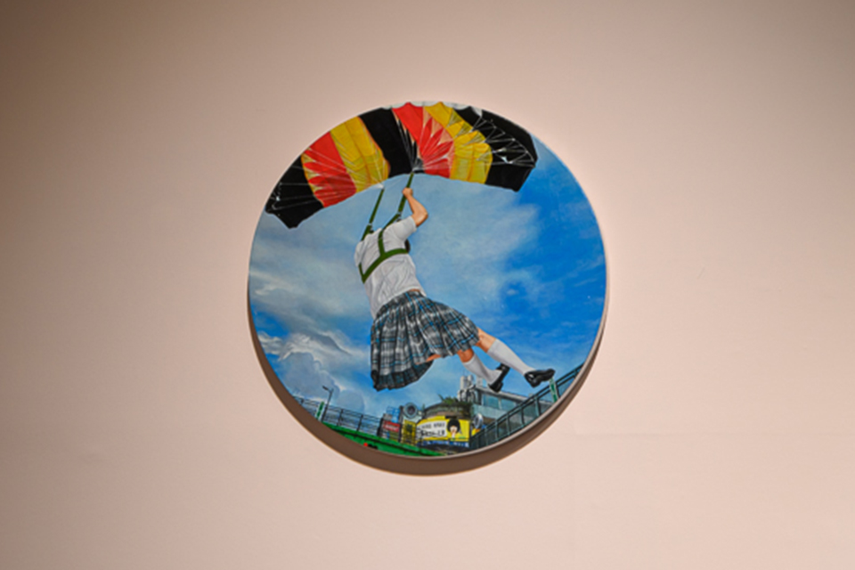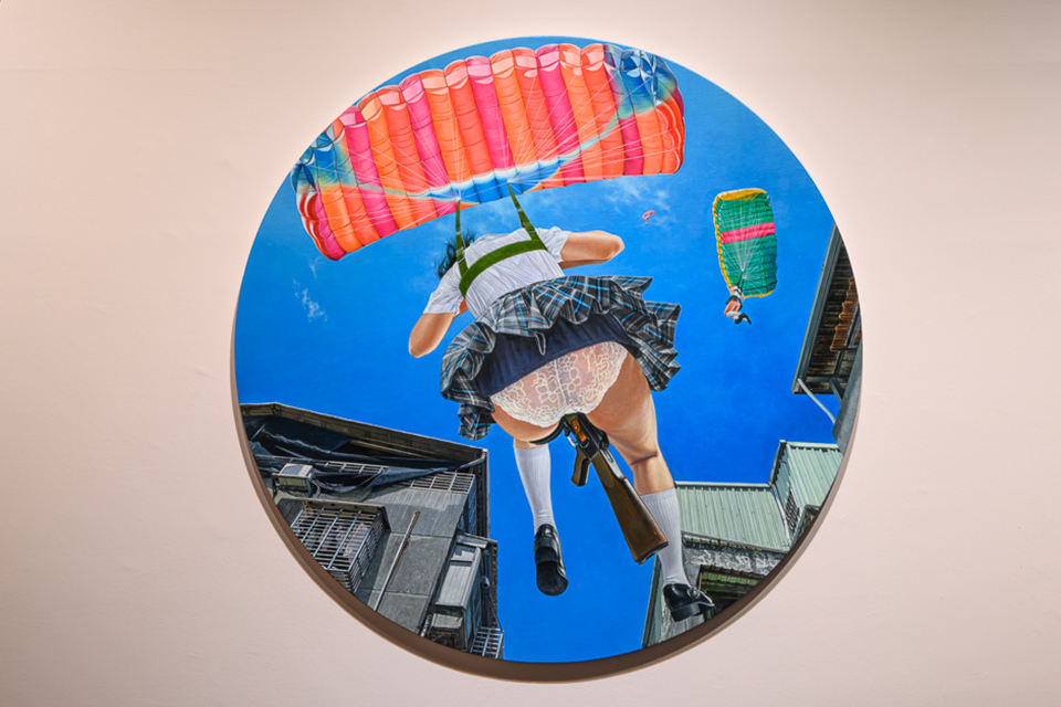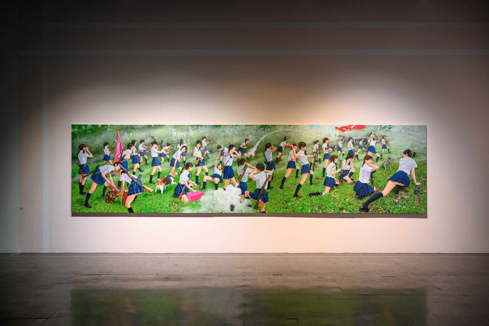 The art practice of Chen Ching-Yao (b. 1976, Taipei, Taiwan) in recent years mainly engages in the creation of photography and painting, which cover a wide range of topics with an emphasis on deconstructing the symbols of power. His work appropriates popular culture–specifically, Japanese and Korean symbolism, and even portraits of Asian political figures–to conduct extensive processes of rewriting and restating. Such reformulation creates hilarious or comical images or actions. Moreover, he integrates his own image into his work to assume other identities, producing a humorous feeling of intense contrast between his work and the original subject. The artist, by demoting symbols of power, delivers his sarcasm targeted at our society today and hopes that people would be prompted to reflect on the absurdities caused by actions of power in their surrounding as they smile upon viewing his work.