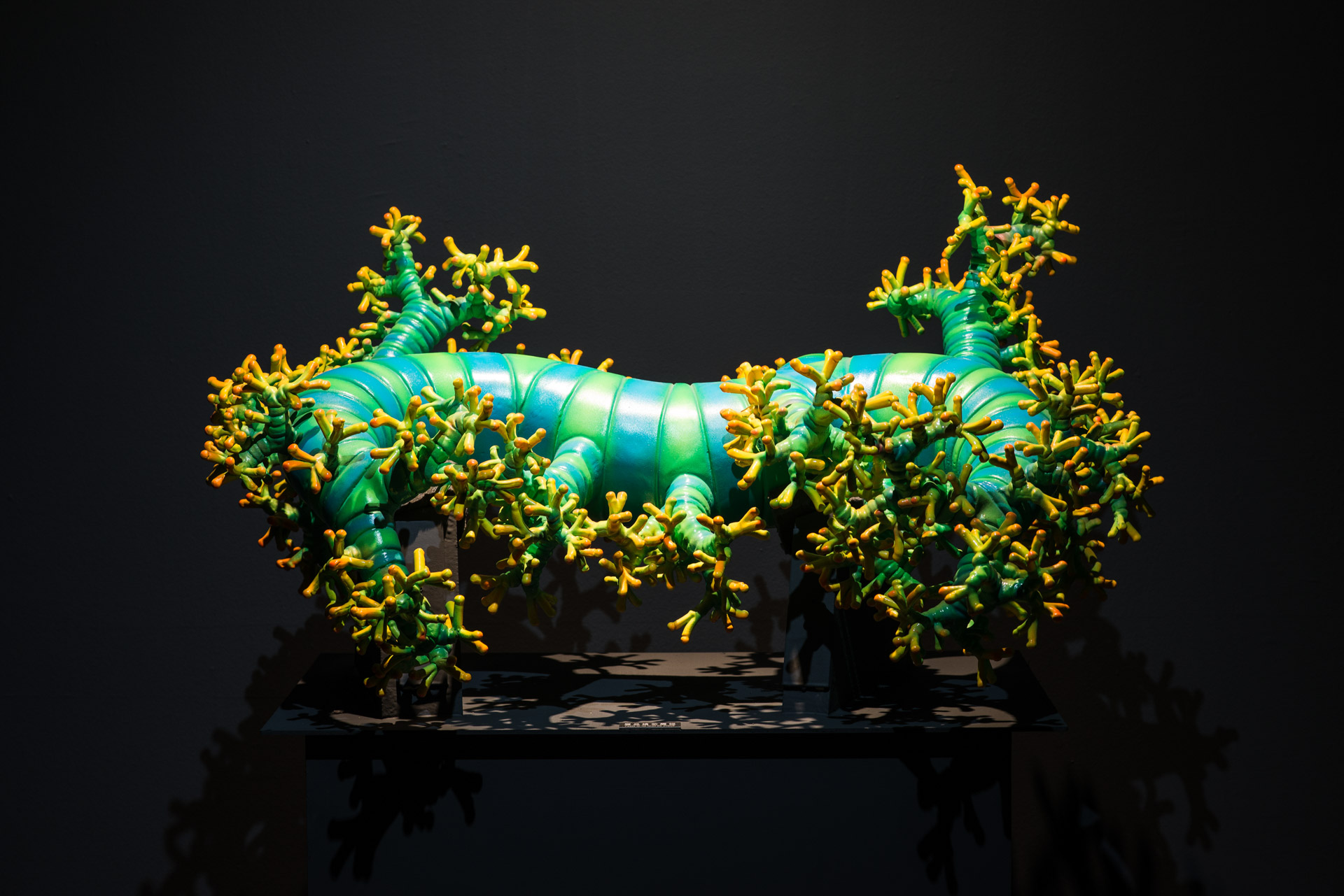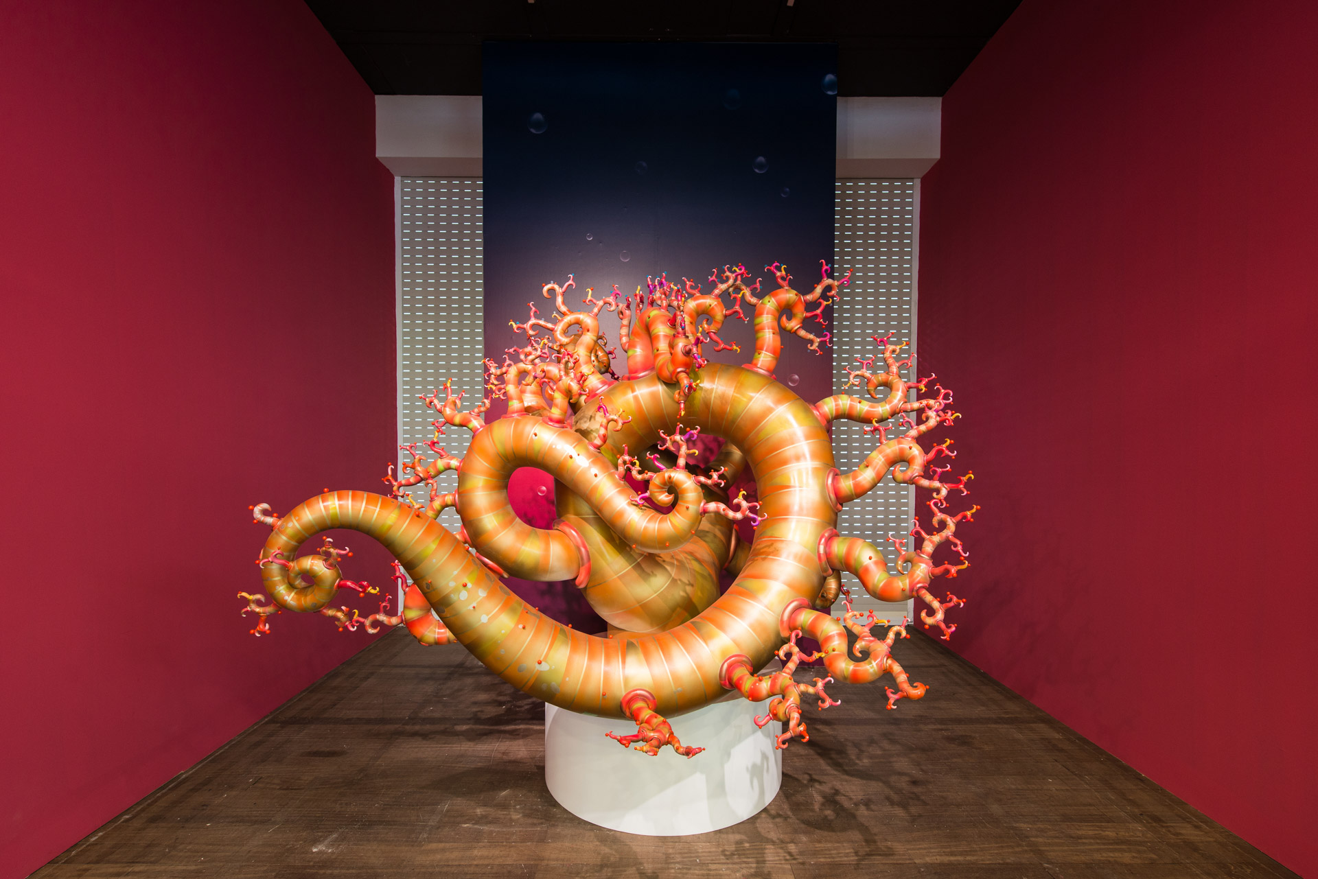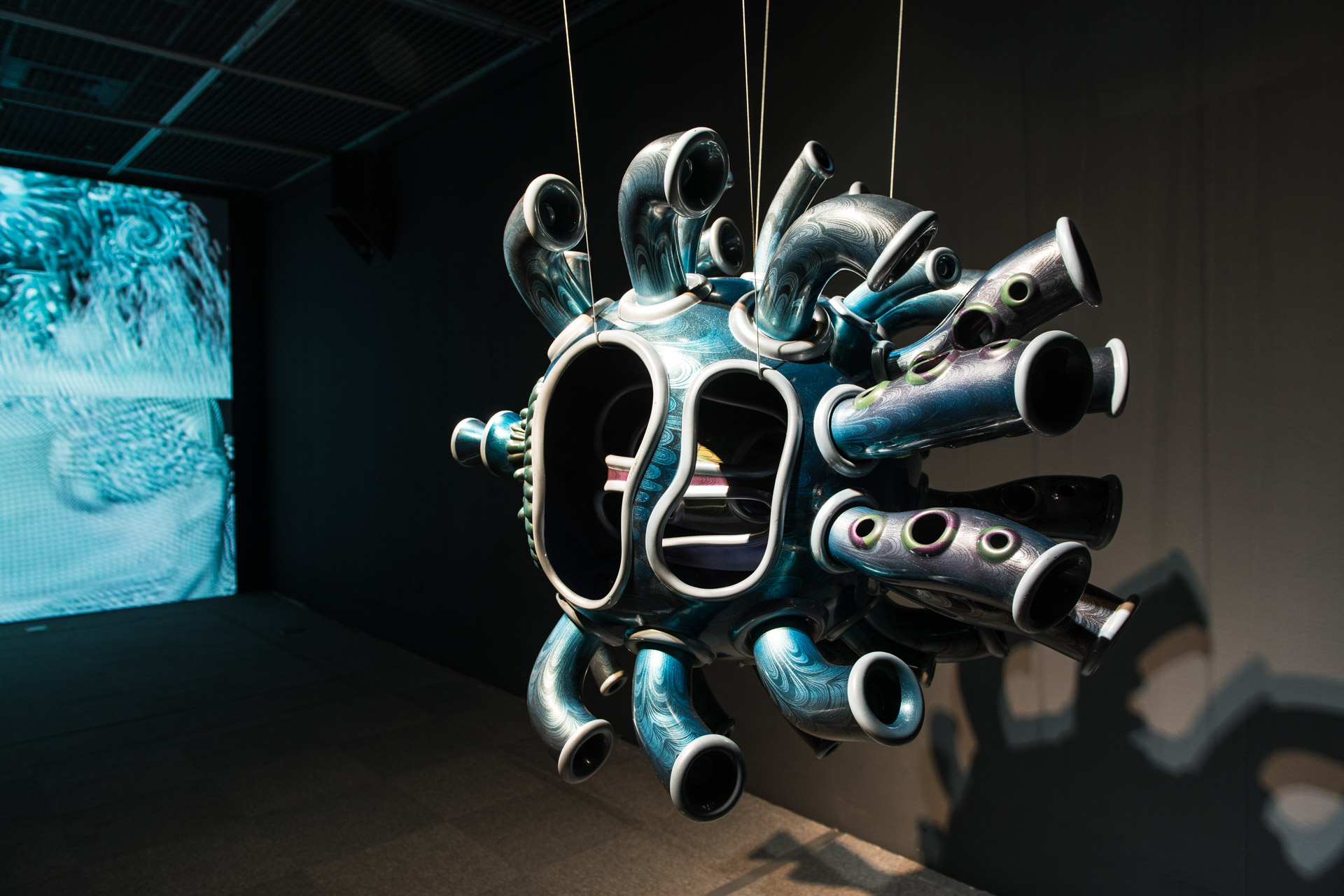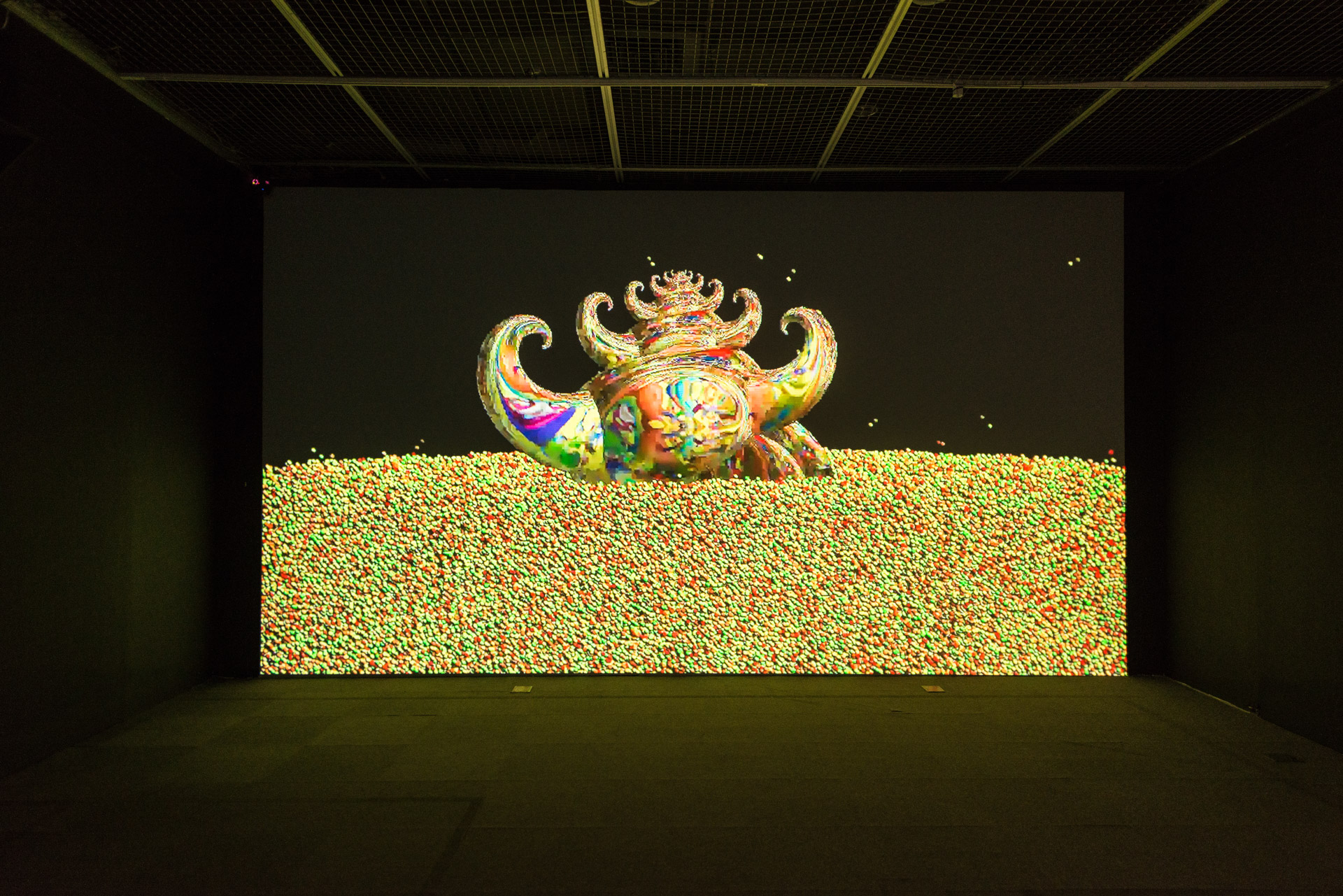 The exhibition reveals Kawaguchi's artistic journey, encapsulating his diversified creative work and its context. From the large coral-like sculpture, Growth, displayed at the entrance of the museum, audience is led into Kawaguchi's extraordinary world of artistic creation and perceptive observations on life. Meanwhile, the theme of this exhibition is twofold: on view on the museum's 1st floor are artworks derived from Growth Model, which range from sketches and drafts, experiments done with computer programming, hi-definition CG animation, to sculptures and interactive installations. On the 2nd floor, audience can see a wide spectrum of artworks based on the topic of "Artificial Life" dating from the 1990s until today. These works are utterly different from those of the early period. While viewing the creative integration of traditional Japanese culture and Kawaguchi's computer graphic images, audience can also take pleasure in the interactive work elaborately designed by the artist. Zero-Gravity Paradise: Kawaguchi Yoichiro's Algorithmic Evolution illustrates life's sensibility and mathematical rationality. The two seemingly contradictory realms are ingeniously integrated in unison via modern technology, introducing more potentiality for humanity and the society. This is precisely where the unique charm of Kawaguchi's computer art resides.